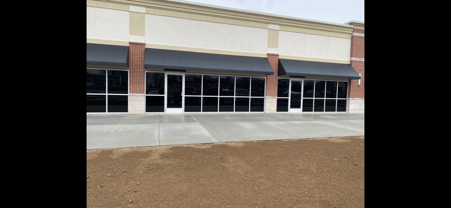 New construction retail center. End-cap includes a drive-thru.